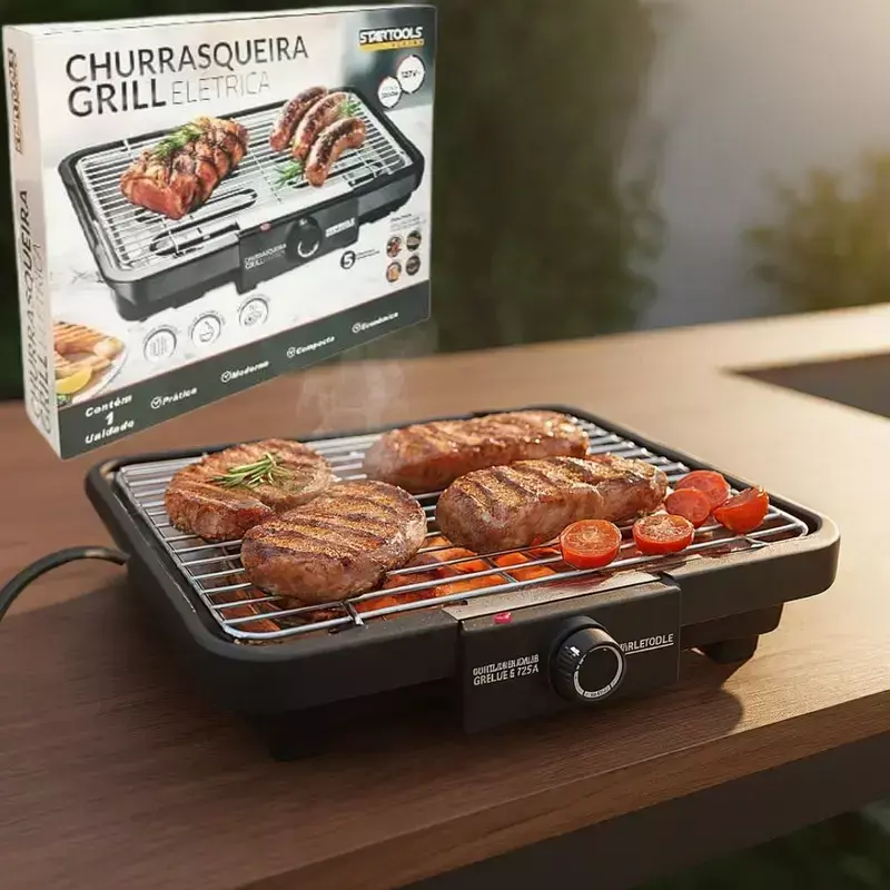 Leve o verdadeiro sabor do churrasco para dentro de casa com a Churrasqueira Elétrica Startools! Ideal para quem busca conveniência, rapidez e resultado perfeito, ela é a escolha certa para preparar carnes, legumes, espetinhos e muito mais, sem fumaça excessiva e sem complicação.